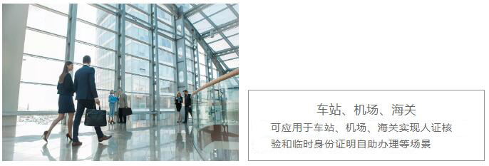 可應(yīng)用于車站機(jī)場臨時身份證明辦理、特定場景人證核驗,酒店自助設(shè)備辦理登記、訪客自助登記、駕校考試人員信息登記和成績查詢、食堂人臉消費,會議人臉簽到、學(xué)校電子班牌等具體場景。